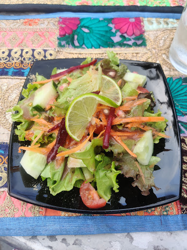 Read moreJ'ai été très mitigé concernant le repas de cette journée au nirvana. La terrasse est très jolie car il y a une belle vue sur le Mont Blanc. Le personnel est sympathique. C'était notre première fois que nous mangions ce type de repas. Lorsque nous avons commandé une entrée à partager nous avions l'impression qu'on nous avait servi les restes du repas de midi. Malheureusement ce n'est pas de la faute du restaurant nous avions énormément de mouches qui sont arrivés en même temps que les plats. Le plat principal était bon, bien épicé. Mais j'ai une légère sensation que ce n'est pas cuisiné(à la minute). Tout était un petit peu sec, une intuition bizarre, heureusement que la viande baigne dans la sauce très huileuse. Au final nous n'avons jamais atteint le Nirvana. Ce fut une découverte culinaire intrgante, mais je pense que nous ne revenons pas. J'apprécie beaucoup et qu'il servent des bières traditionnelles. Concernant l'addition finale, si vous n'avez pas de rabais, cela peut surprendre. Personnellement je trouve très cher pour ce type de nourriture. Il faut privilégier de venir dès l'ouverture car la tante peut être très longue point nous l'avons constaté avec la table à côté de nous, qui se sont plaints souvent, À...