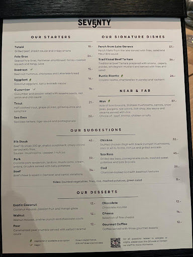 Read moreNous avons vécu un moment inoubliable au restaurant Seventy5 du Crown Plaza Geneva pour célébrer notre anniversaire de mariage. Tout d'abord un 5 étoiles à toute l'équipe d'accueil et de services, un grand merci à la bienveillance de Cindy, Valentine et Farid (notre serveur attitré) qui nous ont fait vivre des moments doux, des envois de plats parfaitements cadencés, très apprécié et agréable. Nous vous recommandons vivement de commencer avec les éperlans croustillants frits délicatement accompagnés de la sauce tartare parfaite. Un excellent moyen de commencer à titiller vos papilles. Ensuite si vous aimez le boeuf alors le tataki avec condiment tzaziki est une perle et si vous aimez du pur rafraichissement alors les tomates multicolores fermes, goûtues et fondantes iront parfaitement bien avec une huile d'olive d'exception (sur votre table) et leurs perles de bufalas. Plat principal: rumsteak saignant grillé à la perfection (avec un vrai goût de barbecue) et prenez le jus corsé (d'agneau) et substituez les frites avec leur purée de pomme de terre qui fera du coude à celle de Robuchon. Meilleure purée de pomme de terre de Genève, bravo au chef. Vin blanc tout le long du repas: Pinot Gris domaine Centaure Dardagny. Finir en douceur avec le rafraichissant et original cheesecake avec fraises intenses et avec le basilic, un vrai délice. Ou plus sobrement avec sorbet citron vert et glace gingembre. Vous pouvez y aller les yeux fermés. Un établissement qui mérite...