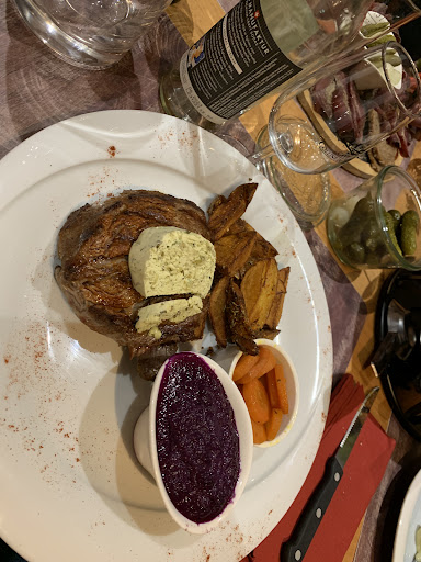 The food here is delicious and service is very friendly. We had the fondue for two, the tapas of tapenade and olives on garlic bread with some hummus as well as the viande sĂ©chĂ©e platter plus a rally hearty steak au poivre. Dessert of crĂšme brĂ»lĂ©e and two sorbets. All super super delicious. It is a one man show so have patience and do book a table in advance to avoid disappointment. We saw the bone marrow dishes on the other side of the table and regretted we didnât...
