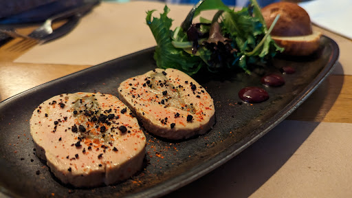 Food wise we started for the suggested foie gras, just delicious. We follow up with a asparagus and shrimps risotto, with feta cheese, and a lamb fillet with mashed artichokes. Both servings were generous and super tasty. We had to compliment the chef for all we had. Finally, two coffee and an home made apricots sorbetto were followed up by an offered limoncello. The wine list is well served, tho I went just for a glass of a local bio red wine.