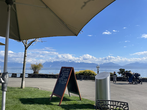 I told him what he is pointing is a coloring pencil and he has no idea what he is talking about.( and even if she had some drink in her hand, she was at a public bench nearby, out of his territory but nevermind) He just ruined it for nothing. I realized his fault after but, instead of saying '' Sorry'' he told me He cannot talk to me anymore! and that's it. The guy has issues. he has just lost another weekly customer, and lost an order of 4 crepes, 4 icecream, 2 coffee and 2 bottles of water. We left and we had our coffee and ice cream in the Casino Morges, just across this place. Better service...
