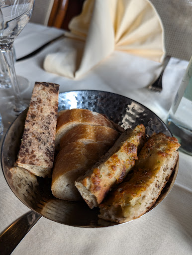 Read moreRepas pas mauvais mais beaucoup trop cher pour ce que c'est : Chf 40.- pour un filet de bar accompagné d'un petit bol de riz basmati et quelques légumes (un peu trop gras), et (sauf erreur) Chf 42.- pour des grenadins de veau sauce cognac (3 morceaux et une sauce brune sans aucun goût) et un mini bol de frites. J'ai demandé de pouvoir avoir quelques frites supplémentaires, on me les a servies quand j'avais déjà terminé mon assiette ! Et au lieu de s'excuser ou offrir un café, le serveur m'a juste répondu d'un air désintéressé que c'était pas de sa faute, qu'il avait transmis la commande de suite aprés que j'aie demandé...