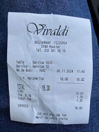 J’ai commandé une pizza margherita, sur les cartes c’est écrit 17.- mais mon ticket est de 18.- (comme vous pouvez voir les photos)