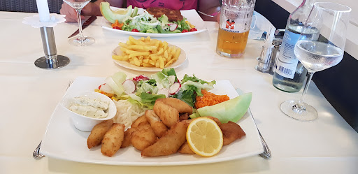 Very pleasant restaurant with a tranquil view of the Rhein from the outside seating area. The service is attentive and we were lucky to have a table outside on a hot summer Saturday evening. I chose fitness dish with veal cordon bleu which was excellent: tasty, juicy and a decent size. Served with a lemon as perfect complement and an excellent mixed salad with fresh ingredients - even honeydew melon. I can heartily recommend a fine traditional Sweetened as meal at this very pleasant venue. The aperitifs were very well prepared and the open house wine very decent...