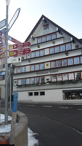 Read moreWir haben auf einer Ebiketour für eine Nacht im Löwen übernachtet. Das Haus wurde 2019 komplett renoviert. Entsprechend taufrisch waren Zimmer und Bad. Einrichtung ist zweckmässig, aber freundlich. Doppelbett mit getrennten Matrazen, nicht zu hart, nicht zu weich. Alles sehr sauber. Bad mit angenehmen Platzverhältnissen.|Schöne Gaststube, teilweise mit historischer, bemalter Holzwand - sehr schön! Auf der Speisekarte nicht nur die üblichen Schweizer Standards (die gut gekocht wurden), sondern auch kreative Gerichte für Vegetarier: Feiner gebackener Ziegenkäse mit Honigmarinade und Salat und hausgemachte Safran-Gnocchi. (Wir haben abends dort gegessen, es ist die einzige Gaststätte in Hemberg.)|Frühstück wird serviert: Brötli, Gipfeli, Brot, Käse, Fleisch, Konfi, Früchte, Joghurt, Saft, Tee und Kaffee. Es bleiben keine Wünsche offen!|Unsere Ebikes konnten wir in einer Garage gleich um die Ecke einschliessen.|Wir wurden sehr freundlich empfangen und haben uns sehr wohl gefühlt! Wirklich...