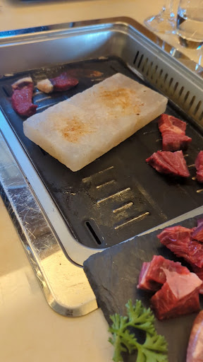 This restaurant offers a fresh and new perspective on how to enjoy meat. As soon as you enter the restaurant you see a wide meat "vitrine" like in a butcher shop that intrigues you. Almost all of the tables were quite full but we did manage to get a table for five. In the middle of the table there was a glass cover that was not immediately visible to us what it was for. The whole experience, from the actual ordered raw meat that was presented to us, to the actual self-grilling and enjoying with some truly fine sauces is truly unique. I would say, as unique as Kevin's service. Always smiling, he explained the concept and is ready to answer all questions, even the more scientific ones, the ones to do with the biology of the proteases/lipases that play a great role in the meat aging process and end result. His service and guidance was truly of high standards without ever becoming too much. I believe that half of the restaurants success is its unique concept and the other half its amazing customer-centric approach. It also has a seemingly large wine variety, which I did not try as I concentrated on its truly tasty Valaissiene bier. All in all a great place to have dinner for anyone loving his meat. Is it all great? Well I am always truthful and cant hide possibly the only disadvantage of the whole experience. Even if there was a strong ventilator over our table to quickly remove the grilling smoke from the air, we still needed to aerate our clothes during the night :) All in all five "stars" as its truly a unique and enjoyable...
