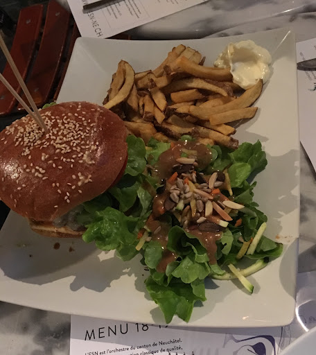 Pretty good Swiss food at reasonable price. Every day there is a different plate of the day at 18.50, with optional starter (21). They also have two different burgers, quite popular. The beer selection is good and they propose some good cold tea for the meal, as well as a good selection of hot tea for after. The place itself has a nice old bistrot feel but it can get a bit noisy...