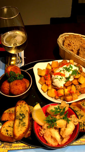 Après réservation, nous nous présentons pour qu'un des serveurs nous installe, cependant la table que l'on nous avait octroyée n'était pas encore libérée. Cette situation incongrue a été très bien gérée par un serveur qui nous a installé sur une table en extérieur, à pris notre commande de boisson et est venu nous chercher lorsque la table fut libérée. Ambiance très chaleureuse et cosy, surtout dans l'espace du bas serveurs et serveuses agréable. Les plats de tapas aux choix sont très bon (mention honorable au tartare de bœuf) mais il y a tout de même certains qui n'en valent pas la peine au vu du prix et de la quantité servie (notamment le pain à l'ail). Ce fut très bon que j'en aie redemandé en commandant et goûtant leur cheeseburger (gros sac que je suis). Ce burger maison était excellent, la viande était saignante comme il le fallait et je me suis régalé. Le bémol qui est survenu durant notre soirée fut l'attente de plus de 40 minutes pour des desserts, car il y a eu un méfais dans la cuisine d'après ce que nous a dis la serveuse. Serrés au niveau de l'horaire, nous avons donc dû partir sans le plaisir de goûter le fondant au chocolat. Mise à part quelques points perturbants (mention à la carafe d'eau payante), je fus ravi de cette soirée passée dans cet établissement que je...