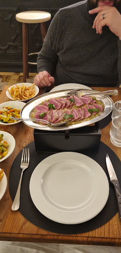 Read moreCadre sympathique et service souriante. Malheuresement, que sourire, cela ne suffit pas pour un restau qui se veut "haute game". Service pas professionel et très lente, pour demander resp. faire une commande, fallait bcp de patience (2 serveuses pour 30 personnes, ça derait fonctionner) Repas servie avec du pain couper le matin (?), de plus il fallait rédemander pour le tartarre à plusieurs reprises (pas de toast, la serveuse voulez reprendre le pain sur table pour le toster, franchement un no go). Plat principale servie sasn assiette ni pain.....Vraiment dommage. Voulez faire part mes mécontentement au patron, je qualifie sa réaction inapropriée. Même un...