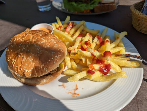 Absolut ideal für einen Marschhalt und einen Kaffee oder Bier auf der Wanderung. Der Sangria ist jedoch nicht zu empfehlen, der schmeckt eher nach saurem Eistee… Die Aussicht von der Terrasse ist jedoch wunderbar! Es ist eine Art Selbstbedienungsrestaurant, wobei an der Theke bestellt und bezahlt word, die Speisen aber serviert werden. Leider hat uns aber das Essen überhaupt nicht überzeugt! Das Kalbs-Cordonbleu für CHF 41.50 war zwar gerade noch ok. Die Pommes waren aber leider zu wenig gebacken und die Gemüsebeilage (Blumenkohl, Rüebli, Bohnen) war schlicht ungeniessbar! Offenbar hat man sich hier mit Büchsenbohnen und vorgekochten Halbfertigprodukten bedient, die völlig verkocht und daher komplett geschmacklos waren. Für das zweite Menu bestellten wir eine Portion Pommes mit Gemüse. Dabei wurde uns dann der Gemüseteller ohne Käse aber trotzdem für CHF 24.50 (!!) verrechnet. Das Gemüse war aber genau dasselbe, fad und völlig verkocht, einfach mit einer Tomate ergänzt. Auf die Nachfrage, ob es geschmeckt hat, erklärten wir der Kellnerin unter Rückgabe des gesamten Gemüses, dass dieses leider wirklich nicht geniessbar ist. Das wollte sie der Küche ausrichten… Leider mussten wir dann jedoch trotzdem den vollen Preis bezahlen, was total unangebracht war. Hat aber auch evtl. damit zu tun, dass unsere Reklamation nicht auch an der Kasse ausgerichtet wurde… Insgesamt war der Aufenthalt für uns daher sehr enttäuschend und das Lokal aus unserer Sicht vor allem für Vegetarier und Veganer nicht weiter...