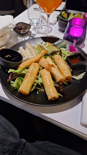 On nous a servi un spritz apéro qui avait un goût d'eau. Ils l'ont modifié et c'était un peu mieux. On avait très faim, alors on a commandé une soupe de coco, des gyozas et un pad thaï. La soupe de coco était horrible, avec du lait caillé, les gyozas étaient mauvais et froids, et le pad thaï avait un arrière-goût horrible. J'ai mangé dans de nombreux restaurants thaïlandais et c'est incomparable. Préparer ce genre de plats n'est pas le point fort de cet endroit. Je ne le recommande absolument pas, car en plus d'être cher, on paie pour une nourriture de mauvaise qualité. J'espère qu'ils amélioreront leur service. Mais à mon avis, je n'y retournerai jamais. J'ai joint la preuve. J'ai des vidéos mais ici ne me permet pas de les...