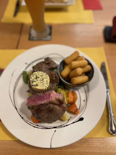 Great place to have lunch. They have all-you-can-eat buffet lunch. Several main and side dishes, soup, a few desserts (and possibly also Salat but I can't remember). The food is always tasty and the price is rather low. Because of that it's well visited by employees and workers in the area. We went there a few times and were always very satisfied. You get a very good value for your money. I would recommend this...