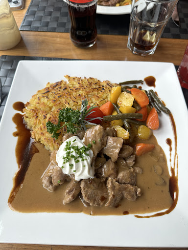 Das Zürchergeschnetzelte war unglaublich zart und sehr lecker! Rösti ebenfalls top, schön knusprig. Ein Minuspunkt für die Champignons, die offensichtlich aus der Dose kamen. Für den Preis und den gehobenen Standart erwarte ich frische Champignons.