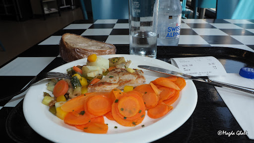 I appreciate much that they cook meat or fish in front of you at a normal price (around 16-19 chf for poulet, 20-22 for pork, 22-28 for beef or fish). One time I got overcooked meat and some colleagues as well.