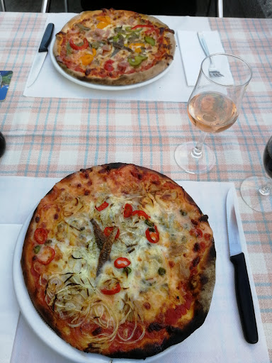 Read moreWer eine gute, bodenständige Pizza aus dem Holzofen essen möchte ist hier genau richtig. Der Teig erinnert an eine neapolitanische Pizza. Kein superdünner Teig aber dafür saftig und knusprig. Geschmacklich sind sie ebenfalls sehr gut. Reich belegt aber nicht überladen. Gewürze sind für meinen Geschmack gut abgestimmt und das hauseigene, scharfe Gewürz, verleiht der Pizza Pepp. Einen Stern Abzug gibts wegen der Dosenpilze. Das ist für so eine sensationelle Pizza wirklich schade. Die Terasse ist auch etwas lieblos gestaltet. Das macht der super gastfreundliche und äusserst aufmerksame Service aber wieder gut. Wie kommen sehr...