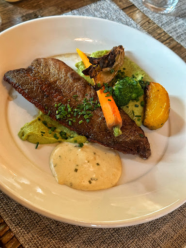My recent visit to this restaurant was nothing short of exceptional. From the moment I walked in, the pleasant and cozy atmosphere set the tone for a memorable dining experience. The interior exudes warmth and comfort, making it an ideal spot for a relaxed meal. The staff are incredibly kind and attentive. They were always ready and quick to assist with requests, adding to the welcoming ambiance. Now, onto the highlight: the food. The dishes served here are incredibly delicious, but the trout deserves a special mention! It was, without a doubt, the best-cooked trout I have ever tasted. The flesh, which had a nice pinkish hue, suggested it might have been rainbow trout!? The flavors were exquisite, and what surprised me the most was how delectable the fish skin was. I typically don't eat fish skin, but this was the tastiest I’ve ever encountered, crispy and flavorful. For dessert, I tried the Pain Perdu caramel, which was another first for me. It was a perfect ending to the meal, matching the quality and taste of the main course. The dessert was rich and indulgent, yet balanced and delightful. To top off this wonderful experience, the restaurant offers a stunning view of Lac Retaud. As if planned by nature itself, a rainbow appeared over the lake, creating a picturesque and serene backdrop to an already perfect evening. In conclusion, whether you're a local or a visitor, this place is a must-visit for an unforgettable...