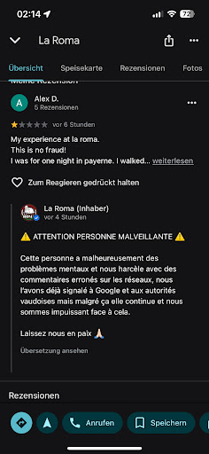 My experience at la roma. This is no fraud! I was for one night in payerne. I walked the hole day and was happy that I arrived. So I searched a good Restaurant. Your pizzaria had a good recension, so lets try. I walked inside the restaurant. The waiter saw me and I walked towards him, and greet with: bonsoir The waiter look at me and turned around. I am 27 years, travaling alone and I was cleanly dressed. Okay, maybe I‘m not the usual client, but this reaction is disrespectful.
