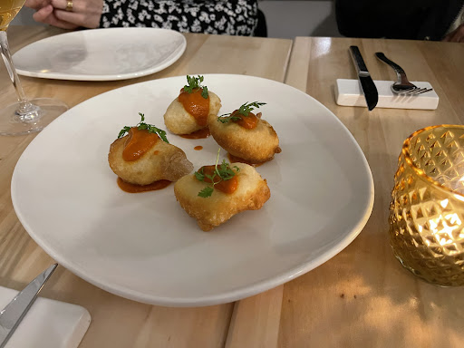 Read moreDifficile de noter ce restaurant. Je serais moins complaisant que les autres avis et je vais vous faire part de notre expérience. Jolie déco, très bon accueil, personnel sympa, souriant et engagé au niveau du service. Nous étions 6 personnes installées sur une table normalement adaptée pour 4 personnes, mais bon ça allait. Commande de tartare en entrée, poissons et spaghetti vongoles (trop salées). Le restaurant met des noms à rallonge sur la carte pour chaque plat pour nous faire croire qu'on va manger une cuisine très inventive et savoureuse. Malheureusement rien de tout ça une fois que l'assiette est devant vous. Si les plats sont plutôt bien présentés, les goûts restent plutôt fade et sans grandes saveurs. Le pompon est le Tiramisu revisité, une boule de glace café avec quelques miettes de speculos et une sorte de crème anglaise qui recouvre le tout. Les plats servis sont pour la plupart tièdes et pas assez chauds. Nous avons fait la remarque au patron, qui s'est excusé et qui nous a offert les cafés et le limoncello. Le restaurant était complet, et le bruit engendré par toutes ces personnes rendaient le dialogue un peu pénible. Je conseillerais une isolation phonique plus adaptée, clairement il y a beaucoup trop de raisonnance dans cet établissement. En gros on essaie de vous en mettre plein la vue, mais dans les faits ça n'a vraiment rien d'exceptionnel, ça reste bon et correct mais ne correspond pas, selon moi, à l'image d'un très bon restaurant italien comme on aimerait vous le vendre. J'ajoute que la carte des vins est très bien fournie. Perso je n'y...