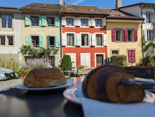 This bakery has great bread but the CROISSANTS! My goodness... their croissants are something else! They have a crust made in heaven. Definitely the best croissants I have ever had in my Life so far. They have a little coffee shop too with generous outdoor seating and a nice view on the more colorful houses of Perroy. A slight design makeover would do them some good. But then again it’s part of their charme that they are an unpretentious typical bakery...