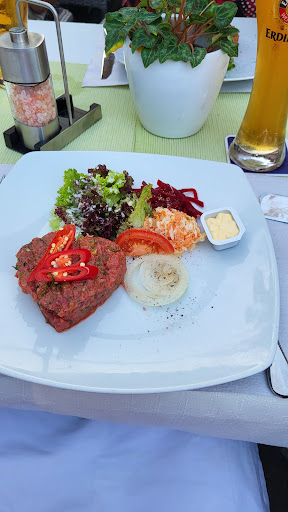 Zum ersten mal mit Freunden im Rebstock gegessen. Der Service war wirklich sehr freundlich und witzig. Die Terrasse ist relativ klein und trotzt der Nähe zur Strasse relativ ruhig. Es gibt sicher auch schönere Terrassen, aber der Service hat alles aufgehoben. Uns wurde, ausserhalb der Karte das Rindstatar empfohlen, entweder als Vorspeise oder Hauptspeise. Bis auf eine Kollegin, wöhlten alle das Tatar als Hauotspeise. Ihr Menü sah auch gut aus und bestand aus Käse und Salat. Das Tatar war wirklich sehr gut und wurde ansprechend serviert. Alle hatten wir noch Lust auf eine Nachspeise, wobei jeder etwas anderes bestellte. Ich wieder einmal ein vieux prune. Wir werden sicher wieder im Rebstock essen gehen. Fazit:...