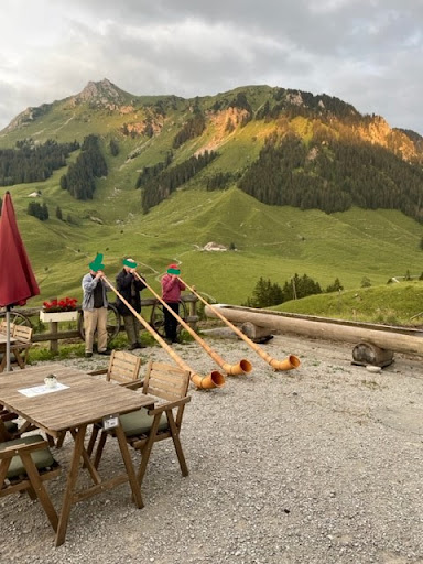 Read moreNous sommes arrivés à 10 personnes et avons pris l'apéro à l'extérieur avec un excellent plat de viande froide et de fromages élaborés sur place. En plus d'une vue magnifique nous avons eu la chance d'assister à une petit morceau de corps des alpes. Pour le repas nous avons commandé des raclettes ainsi que la fondue. Tout était excellent et en quantité plus que suffisante. Nous avons apprécié le service très chaleureux et attentionné tout au long...