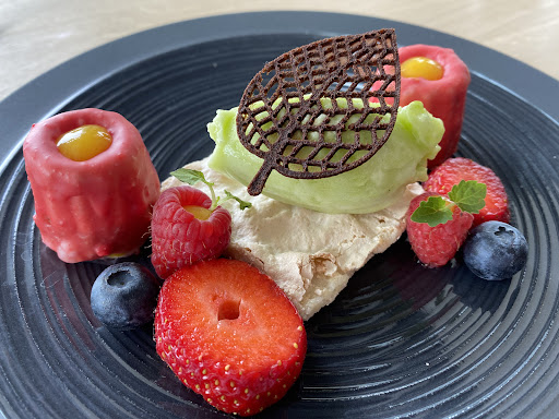 Nous avons Ă©galement pris un plat de poisson Ă la carte, malheureusement accompagnĂ© dâune sauce au cafĂ©, qui nâa Ă©tĂ© annoncĂ©e quâaprĂšs avoir Ă©tĂ© servie dans lâassiette. Pour une personne qui nâaime pas le cafĂ©, ce type dâassociation peut vraiment gĂącher le plat. Dommage.