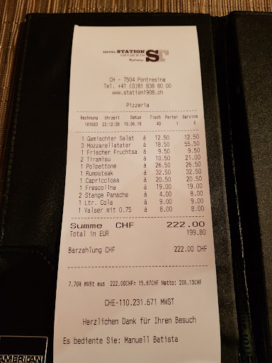 We booked two nights at this hotel for the express purpose of being near the Pontresina train station, which is all of two minutes at most from the front door, and it did not disappoint. The hotel is clean and modern, the front desk staff was cordial, and the breakfast offerings were appropriate. I do have one negative to offer – the bathroom towels were surprisingly thin for a hotel of this caliber. That said, I would not hesitate to stay there again.||||Two things to note: ||||If you travel by car, let them know ahead of time, and a parking space will be awaiting you by name when you arrive. Drive all the way around the hotel to the lower level behind. And if you stay at least two nights during the summer months, your visit includes an Engadin public transit pass which allows you to travel to many parts of the region at no additional cost. If you plan to take any trains, that can greatly add to the room rate’s value. ||||If you want to be in the center of Pontresina, the Station Hotel is not for you; it is about a 15-minute uphill walk to get there. But if a clean hotel with excellent access to the region’s public transportation network is important to you, this is an excellent option. We would unhestitatingly stay...
