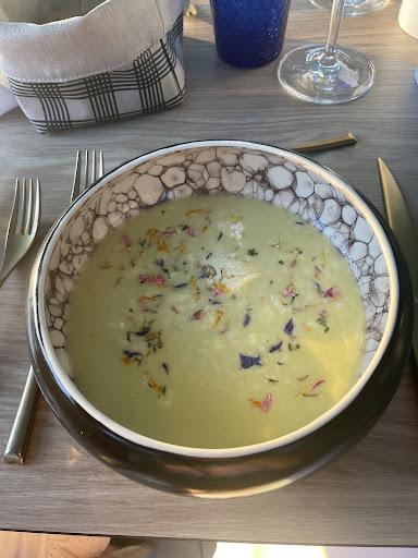 This is a beautiful restaurant with great views. Its modern decor is not however matched by its menu. Despite it being 2025 and eating habits changing to less meat being eaten this restaurant, like too many others in Switzerland, has no vegetarian options for its mid day fixed price lunch. Even worse the a la carte also lacks any! There was a salad and soup option in the starters - the soup, though delicious, and inventive cost 25 francs!!. We were told the kitchen could accommodate a vegetarian dish and my husband was offered pasta. When it came it consisted of white macaroni and vegetables glazed in Japanese sauce. I could have made better at home. The creativeness of the soup makes me believe the chefs could offer properly thought out vegetarian options, they just havenât bothered. A real shame. The views make it worthwhile coming here for a coffee or drink but if you are a veggie or vegan eat elsewhere...