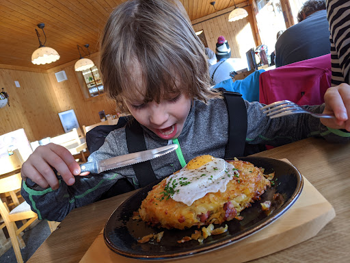 It was a bit chilly outside (it showed a few days ago) and after a hike up from Tannenboden to Chrüz we wanted to drink some hot beverages. But after seeing the menu card we decided to eat here as well. We tried hot chocolate, Jagertee (I would recommend if it's cold outside), hüttenrösti and their homemade ice tea (recommend this as well). It was all so delicious and the staff was very friendly and kind to us, even though we didn't understand the language the whole time. I would love to visit this restaurant again and maybe try some other dishes...