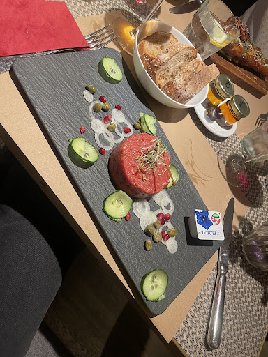 Nun zum wichtigsten Teil: das Essen. Einfach fantastisch! Jeder Gang war ein Erlebnis fĂŒr die Sinne â von der Vorspeise bis zum Dessert war alles frisch, perfekt zubereitet und wunderschön angerichtet. Besonders hervorzuheben ist das Grand Cru Rinds-EntrecĂŽte aus dem Beefer mit Pommes, Fleur de Sel, KrĂ€uterbutter, schwarze Knoblauch-Mayo , das mich wirklich umgehauen hat. Die Zutaten waren von höchster QualitĂ€t, und die Aromen haben perfekt harmoniert.