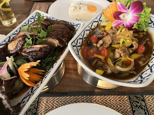 The restaurant is right in the middle of Jona. Outdoor tables available. Indoor is simple and clean with lots of plants. A welcome from the cooks and the waitress. The kitchen is open and one can watch the cooks at work although the tables are away from the kitchen. The Entrepreneur, was actively walking around and greeting customers. We ordered a somtam which was excellent. Our main course had a Kaeng Kiaw wan Kung, Phad Priow wan Gai and Pla Manau Suvarnabhumi. We would not recommend the Fish(Pla manau) as it was fried pieces of fish disguised as steamed fish. The restaurant did offer us complementary coffee and desert but we didn't want any and so they didn't charge us for an apero and a bottle of water. The matronly owner was a bit rude even though she didn't intend it. She came over after I mentioned my thoughts about the fish and said that we should have told her so as she had walked by many times during our meal time. Hope she doesn't intimidate...