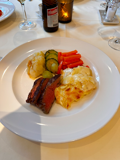 Die Einrichtung präsentierte sich äusserst gepflegt und strahlte einen charmanten, nostalgischen Flair aus – vielleicht ein wenig aus der Vergangenheit, aber mit viel Liebe zum Detail gestaltet. Der Service war von Beginn an professionell und aufmerksam. Kurz nach unserem Platzieren brachte uns der Kellner die Speisekarte, die uns sofort begeisterte. Viele klassische Gerichte standen zur Auswahl, und wir entschieden uns schliesslich für das Chateau Briand.