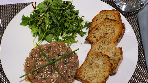 Read moreJoli restaurant au design soigné. Le tartare de thon rouge est très bon, et parfaitement assaisonné. Par contre, les pâtes servies en entrée manquaient singulièrement de goût, et étaient accompagné de brocolis quasiment crus. Au niveau des plats, la viande est très bonne, le filet de bœuf est servi déjà débité en tranches, ce qui est assez surprenant, et devrait être signalé avant la commande. Je pense qu'un filet de boeuf se doit d'être servi entier. Les légumes se résument à une tranche d'aubergine, ce qui est un peu limité. Petite déception au niveau des frites, qui, même si elles sont faites maison, sont beaucoup trop grasses, déception également sur les filets de perches, un peu farineux et manquant de croustillant et de beurre. Service rapide et agréable, il faut dire qu'il n'y avait que très peu de monde ce soir-là. Les desserts n'ont pas été testé. Prix corrects. Nouvelle carte...