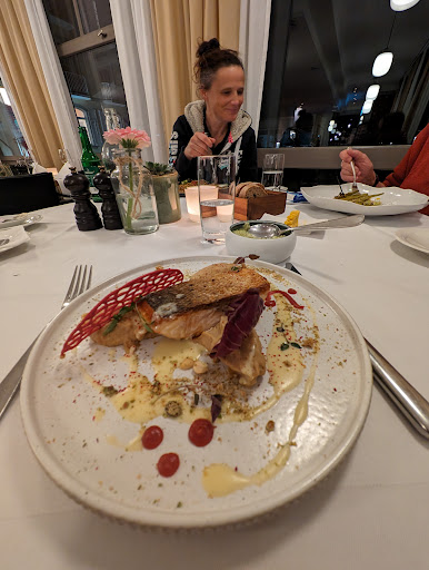 Read moreSehr junge Leute im Service und alle top motiviert und freundlich. So hat man als Gast Freude. Leider stimmt es nicht ganz beim Essen! Wir waren an der Rheinfelder Operette und haben zum Mittagessen das 3-gängige Menu erhalten. Die Vorspeise, eine Knoblauchsuppe, war etwas grenzwertig, da man sich ja nachher in einem geschlossenen Raum zur Operette traf. Zum Glück konnte man einen einfachen Salat erhalten. Das Wienerschnitzel mit Pfifferlingen war leider kein solches. Ein relativ kleines Stück Fleisch wurde von einer überdicken Panade überdeckt und darauf fanden sich noch ein paar Pilze. Das Dessert war schön angerichtet und auch lecker. Trotzdem, das Preis-/ Leistungsverhältnis (55.--) hat für mich nicht gestimmt! Danke an den guten Service, welcher den Eindruck...