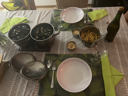 Nous avons testé les moules-frites à emporter, et que dire ? Nous étions aux anges ! Étant adepte des moules-frites ce fut les meilleures que j’ai mangé de mon existence. Service impeccable : aimable, professionnel et bienveillant. Nous nous sommes régalés. Et comme vous pouvez le constater sur ma photo prise dans notre salon, les moules-frites (accompagnées de leur fabuleuse sauce à la rouille : un délice !) étaient exquises. Tout était parfait du début jusqu’à la fin, même jusqu’à l’assaisonnement et à la boisson (cidre offert par le patron)… alors un grand MERCI !!!
