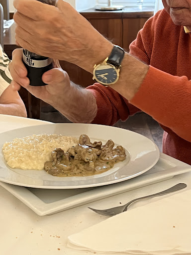 La sella del Fagetti. L'avevo gustata molti anni prima (15-16?), quando il locale era ancora "rustico", di settembre. 2020, anno covid, i ricordi riaffiorano e ci torno con la dolce metá, siamo ad inizio 9mbre. Locale rinnovato, bello. Servizio ok. Attesa per lo spritz, che vien preparato dallo chef e non al baretto. Nel prezzo è compreso un antipasto - buono. Lunga attesa, infine la 1/2 sella ok per 2. La carne - buona! - vien tagliata dallo chef in sala ed ognuno si prepara il piatto coi contorni di proprio gradimento posti in piccole teglie. Mancano però i broccoletti e una cucchiaiata di porcini. Il resto é sul tavolo e ci serviamo. Onestissimo il prezzo dei vini al calice, povero il piatto che mi preparo, niente di che la salsa (manca un po' di burro o panna?). Moolto diverso dalla...