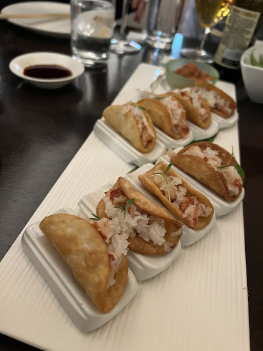 We went in with high expectation, but the food was so bad we thought that this is a prank. First, edamame arrives that were not properly boiled, hard to get out of shell. All the food was very average - if it would cost 10€ per portion, I would not complain. But having a 50€ per portion for this is not normal. Baby spinach salad is simply salad from the pack mixed with some oil, lemon and vinegar. Maki sushi were the basic ones possible - rice and bit of fish in a nori leaf, messy appearance of the rolls. Tacos - fritted pastry with dry chicken.