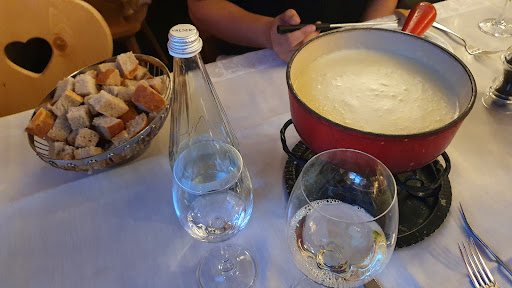 Read moreWe went for dinner on a Saturday night just after 18:00 in Ocotber and it was not very busy. We ordered the basic cheese fondue for 3 people. It had a slightly sharp taste which I quite liked but my partner thought was a little heavy for her taste. It came with ample amounts of whole wheat bread which we got refilled upon request. We ordered a bottle of simple slightly fruity and sweet wine which paired nicely with the fondue and had dessert afterward (all of which were a good portion). I ordered the black forest cake which I found to be too cream heavy and lacking cherry or chocolate flavour. The others ordered the sorbet and nusstorte which were quite good. The wait staff were attentive and polite, and I liked the rabbit themed decor. The prices were a little bit high but not ridiculous in relation to other restaurants in the area, and it did not seem like a tip was expected upon...