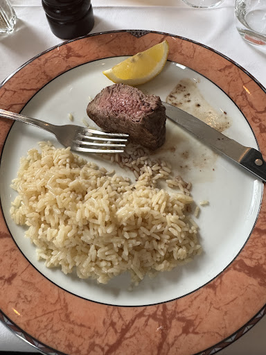 Everyone’s dish was satisfactory except my friend’s rib eye. The rib eye was way under cooked and very rubbery. My friend tried to cut it but it was full of tendons and very raw. By the time the 8 of us were almost finished, my friend was still trying to cut the rubbery meat. Eventually, we made a complaint. The server said there was no policy to replace the dish. He said he had 44 years of experience ; rib eyes are all like that. The piece of meat only needed more cooking. It would be all fine after more cooking. When the recooked rib eye came back, it was still raw inside. The 8 of us were ready to order dessert but my friend was struggling to cut the rubbery meat. In the end, he gave up. The server came and took away the piece of meat ( rubber?). He did not apologize or offer a different meal option. It was the most terrible dining experience in Switzerland. The server was very rude, unapologetic and defensive. Bad experience. Bad memory! Will never return; will never recommend...