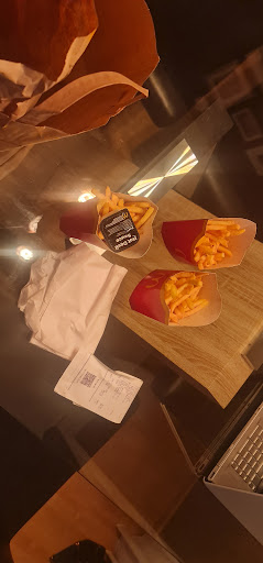 Also wieder ins Auto, 10 Minuten zurĂŒck zur Filiale. Dort sprach ich den Schichtleiter der SpĂ€tschicht (ca. 20:35 Uhr) an â seine Reaktion? Ratlosigkeit. Er konnte auf dem Beleg nicht erkennen, was fehlt. Erst auf Nachfrage wurde mir der fehlende Burger gemacht, zusĂ€tzlich bat ich um eine neue Portion Pommes, weil meine ja inzwischen kalt waren.