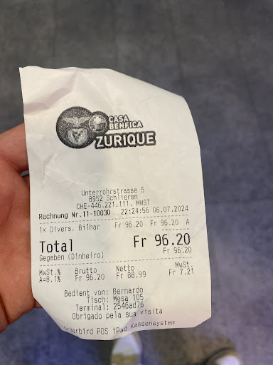 ATENCION ESTAFADORES! TENED CUIDADO! Fuimos a comer y habia una sala para jugar el billar, queriamos jugar y les preguntamos si tenian las bolas y nos dijeron que si, podiamos jugar sin problema. Estuvimos jugando 1 hora y vimos el futbol consumiendo hasta la noche, al pedir la cuenta nos informaron que el billar se pagaba por horas (Cosa que no nos dijeron anteriormente y tampoco hay ningun cartel de que informe de que el precio son 22 CH/H!!!) como no devolvimos las bolas en la barra nos iban contando las horas sin estar jugando, cosa que ellos sabian perfectamente, simplemente querian cobrar. Al reclamar al jefe de sala nos contestó de manera muy grosera, sin dar ningun tipo de explicación. Es muy triste que se quieran aprovechar de la gente de esta manera tan vergonzosa y más cuando pagamos mas de 300 CH entre comida y cena. Espero que esta reseña sirva para que todo el mundo sepa como tratan a la...
