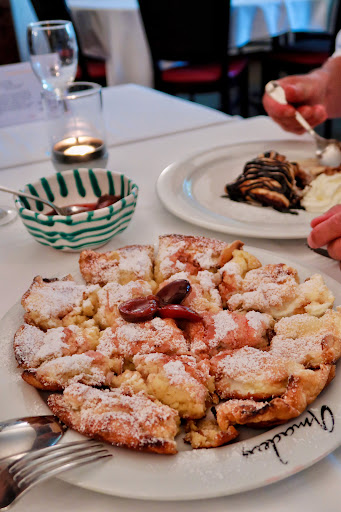 Das absolute Highlight des Abends war jedoch der Kaiserschmarrn mit Zwetschgenkompott zum Dessert! 😍 Die Wartezeit von etwa 20-30 Minuten, da der Schmarrn frisch zubereitet wurde, lohnte sich vollkommen. Es war eines der besten Desserts, die ich in letzter Zeit geniessen konnte - mit viel Liebe zubereitet 🥹 Der Teig war wunderbar fluffig, und sowohl der Rand als auch der Boden waren leicht karamellisiert und goldbraun gebraten, abgerundet durch eine angenehme Süsse der Rosinen.