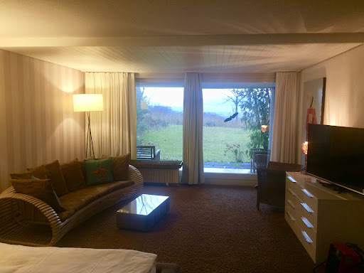 Read moreSituated in an attractive spot at the southern end of Lake Zurich, the hotel is a few minutes walk from the railway station. It is the nearest hotel to Tuggen, a town we needed to visit, and the Strand Hotel made a lovely overnight base for us. The Lake View room we stayed in is in a separate building. It was very comfortable and spacious with a great panoramic view through large patio doors leading onto a small terrace and garden. The bed was very comfortable with a good big bathroom and a small kitchenette. We had an excellent fish dinner in the hotel’s restaurant which is on a balcony overlooking the lake. The good breakfast next morning was served by a friendly lady from Tuggen who was extremely interested in our film project about St Columbanus who had visited there from Ireland fourteen hundred years ago! This is a fine welcoming hotel, easily reached from the station on foot with baggage, camera...