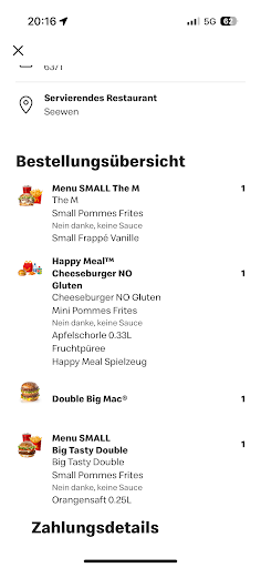 Wir haben über die App ein Menü bestellt und dieses per TWINT bezahlt. Nach 20min haben wir immer noch kein Essen erhalten. Nach dem wir das Gespräch aufsuchten, wurde uns vorgeworfen nicht bezahlt zu haben. Obwohl wir Ihnen die Zahlung über Twint gezeigt haben und auch gezeigt haben das in der App die Punkte abgezogen wurden blieben sie immer noch bei der Meinung das wir nicht bezahlt haben. Eine von den Damen sagte sogar laut “sie sagt sie hätte angeblich bezahlt”. Da frage ich mich, was das für ein Umgang vor der Kundschaft ist??