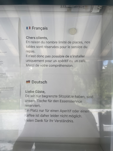 Nous avons demandé si c’était possible déjà un verre à la terrasse et la charmante dame nous a répondu c’est seulement pour manger. Première fois que ça nous arrive dans notre vie à mon conjoint et moi… on trouve ça choquant, surtout qu’il n’y avait personne.