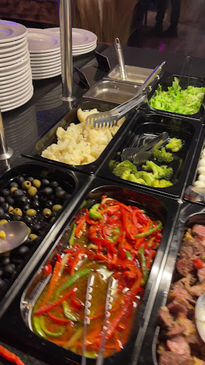 Read moreJe penses que la cuisson de la viande doit être excellente. Cependant comme les autres à table avaient pris le menu à volonté, nous n'avons pas pu prendre le menu simple avec 3 passages. Idem pour le buffet à volonté qui n'était pas disponible. Pareil pour les deux desserts que nous avons commandés et que nous n'avons jamais goûté puisqu'il n'y en avait plus... Nous avons donc mangé à ce restaurant mais nous sommes repartis frustrés et sur notre faim. Un manque de confiance totale pour les clients puisque le patron part du principe que nous volons la viande de nos voisins. Les pancartes prométant une facturation de 10CHF si on ne termine pas son assiette ainsi que 2CHF si on ne termine pas ses sauces me semblent exagérées. Je comprends que certains abusent sur les buffets mais un mot positif ou humoristique appelant à la bienséance serait plus adapté que des mots punitifs. Mon expérience fût mauvaises, mais il y a parfois juste des mauvais jours. Je me suis sentie mal considérée dans ce restaurant et pour moi le buffet que j'ai pris au poids aurait été mis à son avantage avec un peu de viande, sans c'était un peu insignifiant. Donc je ne peux juger que sur le peu que...