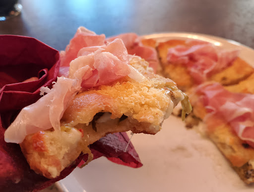 La pizza è semplicemente deliziosa: impasto leggero, ben lievitato e ingredienti di qualità che si sentono al primo morso. La cottura è perfetta e il gusto equilibrato, segno di grande attenzione e passione per il prodotto.