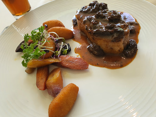 J'y ai mangĂ© le midi 12 aoĂ»t 2025 pour une occasion spĂ©ciale avec 4 amies. Les assiettes Ă©taient parfaites. Menu du jour pour moi Ă 25francs, vitello tonnato ou tartare de bĆuf pour les autres. Le tout accompagnĂ© de salade verte (pas trĂšs bien triĂ©e) et sauce blanche "francaise" ordinaire, des frittes allumettes. Les frittes allumettes, ce n'est pas mon kif mais bon, on peut aimer. Le problĂšme c'est qu'elles sont trĂšs vite froides. On s'en est arrĂȘtĂ© lĂ au niveau dĂ©gustation. Il faisait tellement chaud dans la salle sans ventilation. Nous avions 2 petits ventilateurs personnels. Nous sommes parties au plus vite sans prendre ni dessert, ni cafĂ©. C'est trĂšs surprenant pour un Ă©tablissement qui vient d'ĂȘtre rĂ©novĂ© et qui est tout moderne. Ce fĂ»t une grosse dĂ©ception pour notre repas spĂ©cial, heureusement les assiettes servies ont Ă©tĂ© apprĂ©ciĂ©es. Le service a Ă©tĂ© un peu long. Mais c'est vrai que les serveurs on eu Ă faire avec un groupe de touristes de 16 personnes qui s'est installĂ© vers 13h. On a rassemblĂ© nos paiements et on est allĂ© Ă la caisse payer. Attention au renseignement concernant le gluten, le serveur me dit que c'est OK. J'ai du lui demander de se renseigner en cuisine. Et j'ai eu des...