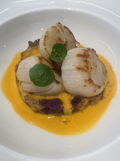 Inside a clinic , find this fantastic restaurant. Lovely modern design. A daily menu. This time , scallops , beef and a fun strawberry mojito dessert. And I need to mention the fantastic wine list , including many famous swiss wines . Quick and efficient service
