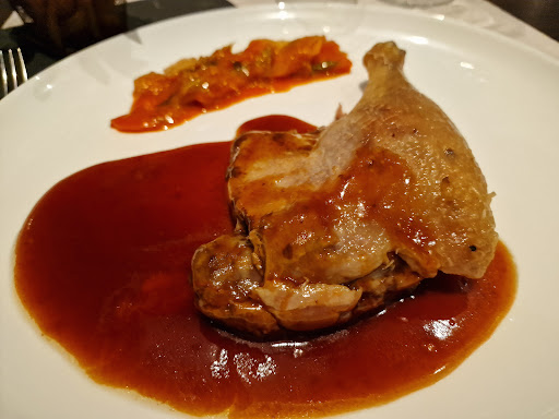 Read moreIl est très rare que je me permette un avis négatif car je connais très bien le problème restauration Fils cuisinier et un autre serveur. Mais là franchement comment peut-on servir sans honte une assiette avec un quart de salade verte et une tartatin oignon de 4cm de diamètre pour 18- . Prix de revient au grand max. 1.-. C'est juste du vol. Pour le reste, moyen ... Tajine passable, paementier de canard sans goût. Finalement quand on sait cuisiner, vaut mieux rester chez-soi Je mets 2 étoiles pour le serveur très Sympa et qu...